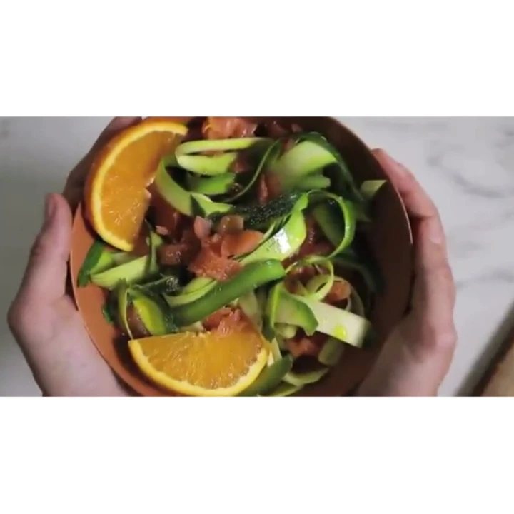 Tagliolini crudi di zucchina con salmone affumicato e arancia