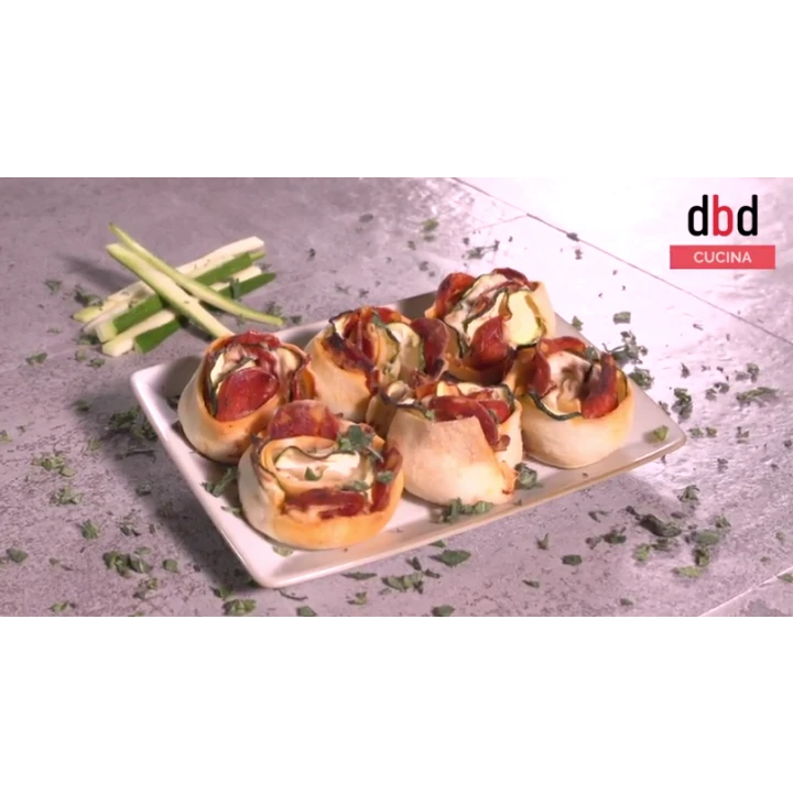 Roselline di pasta brisee, zucchine, ricotta e pomodori secchi