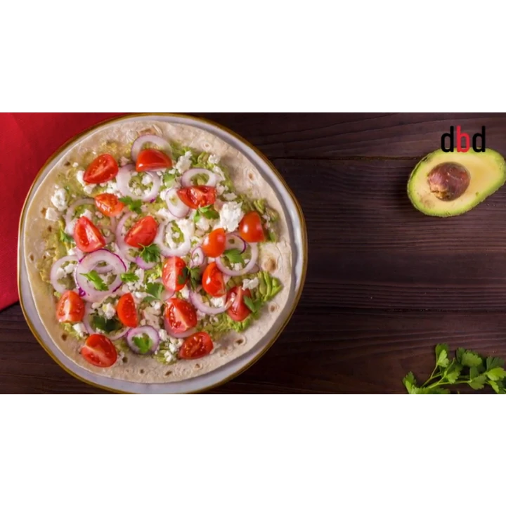Piadina con feta, cipolla rossa e pomodorini, avocado